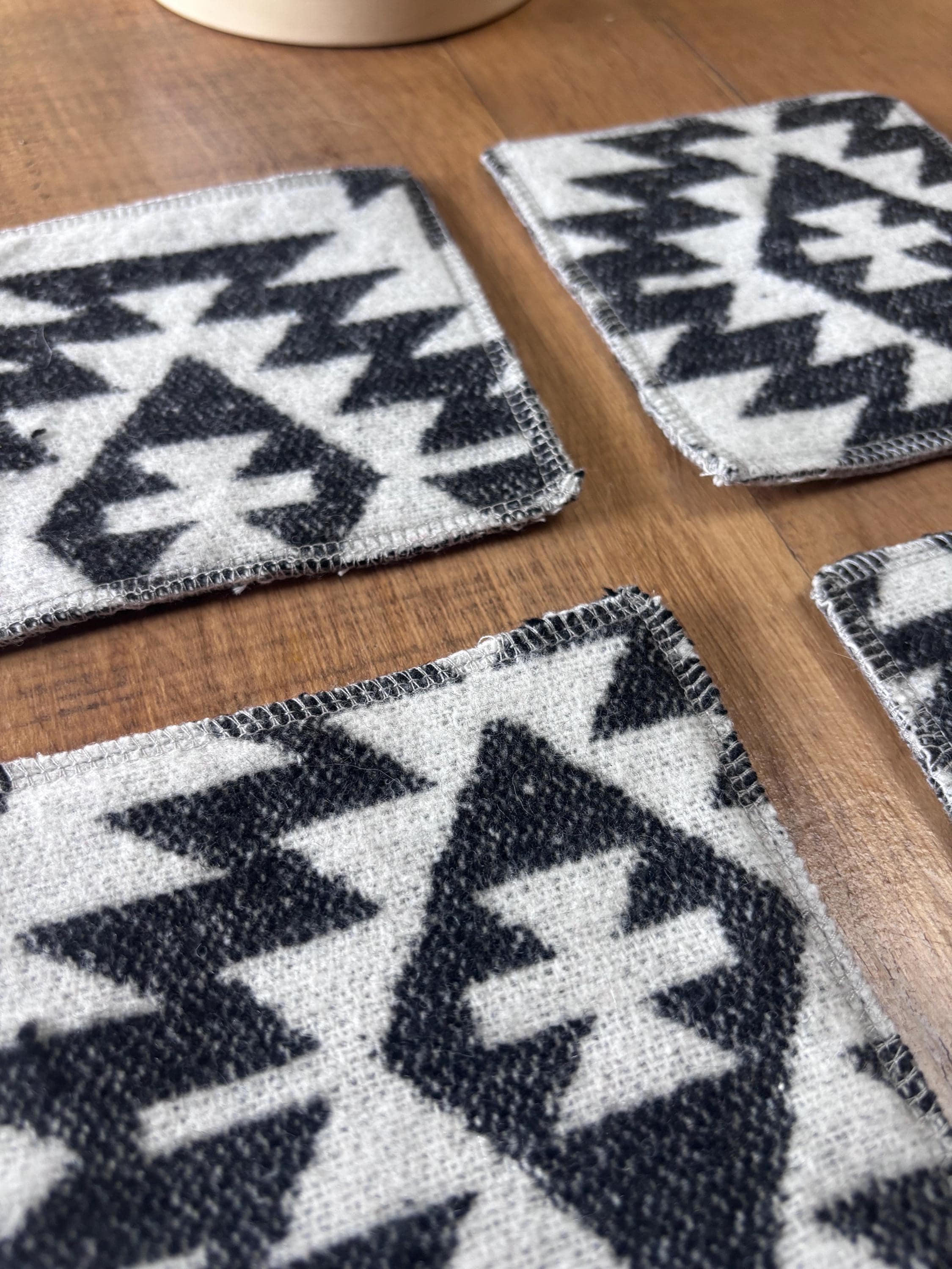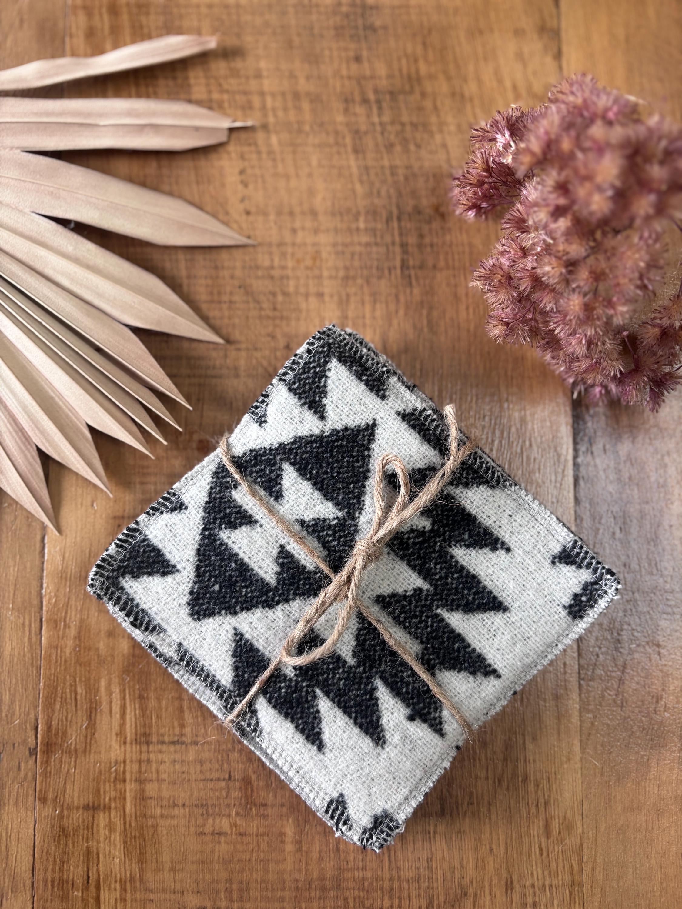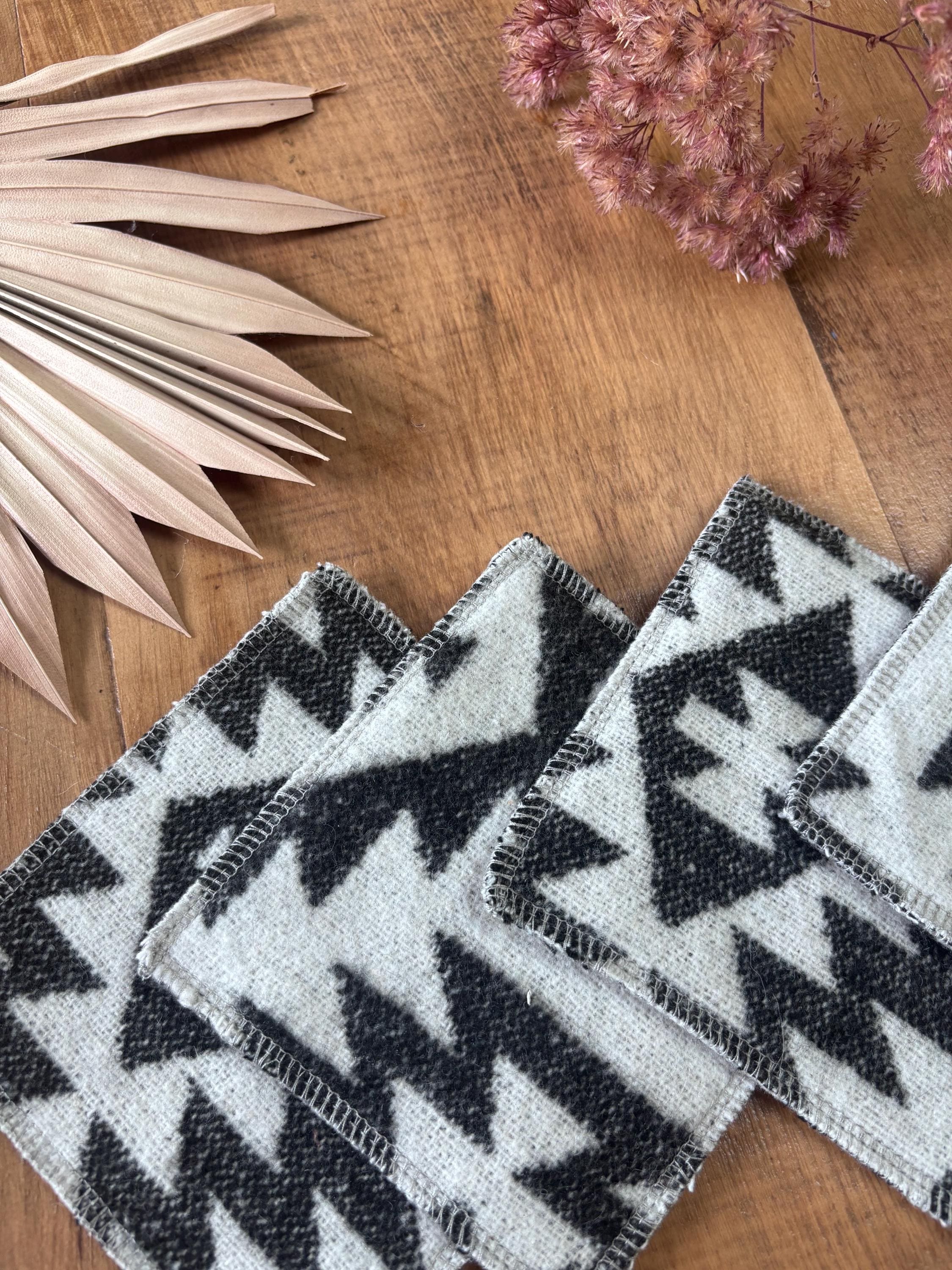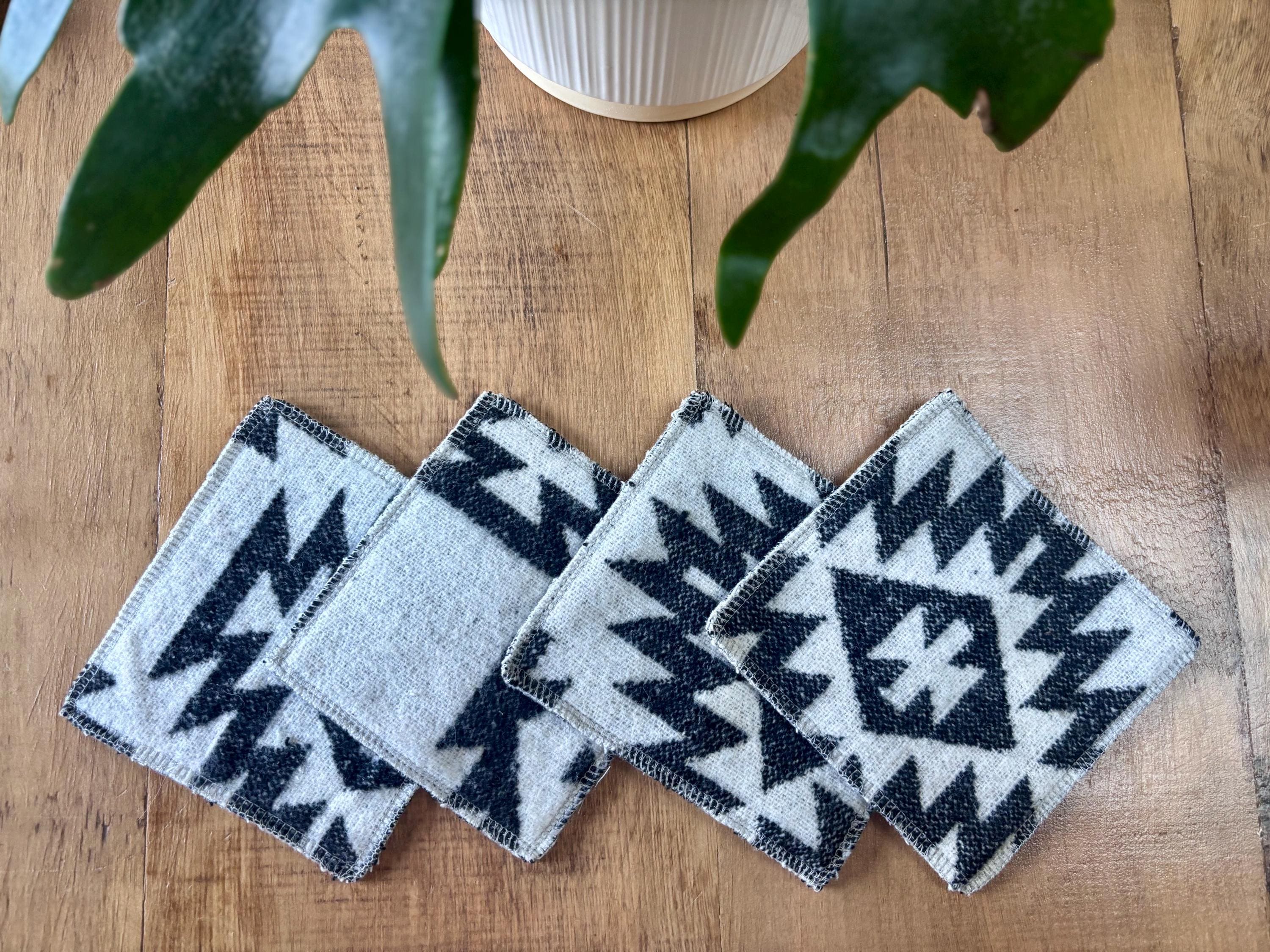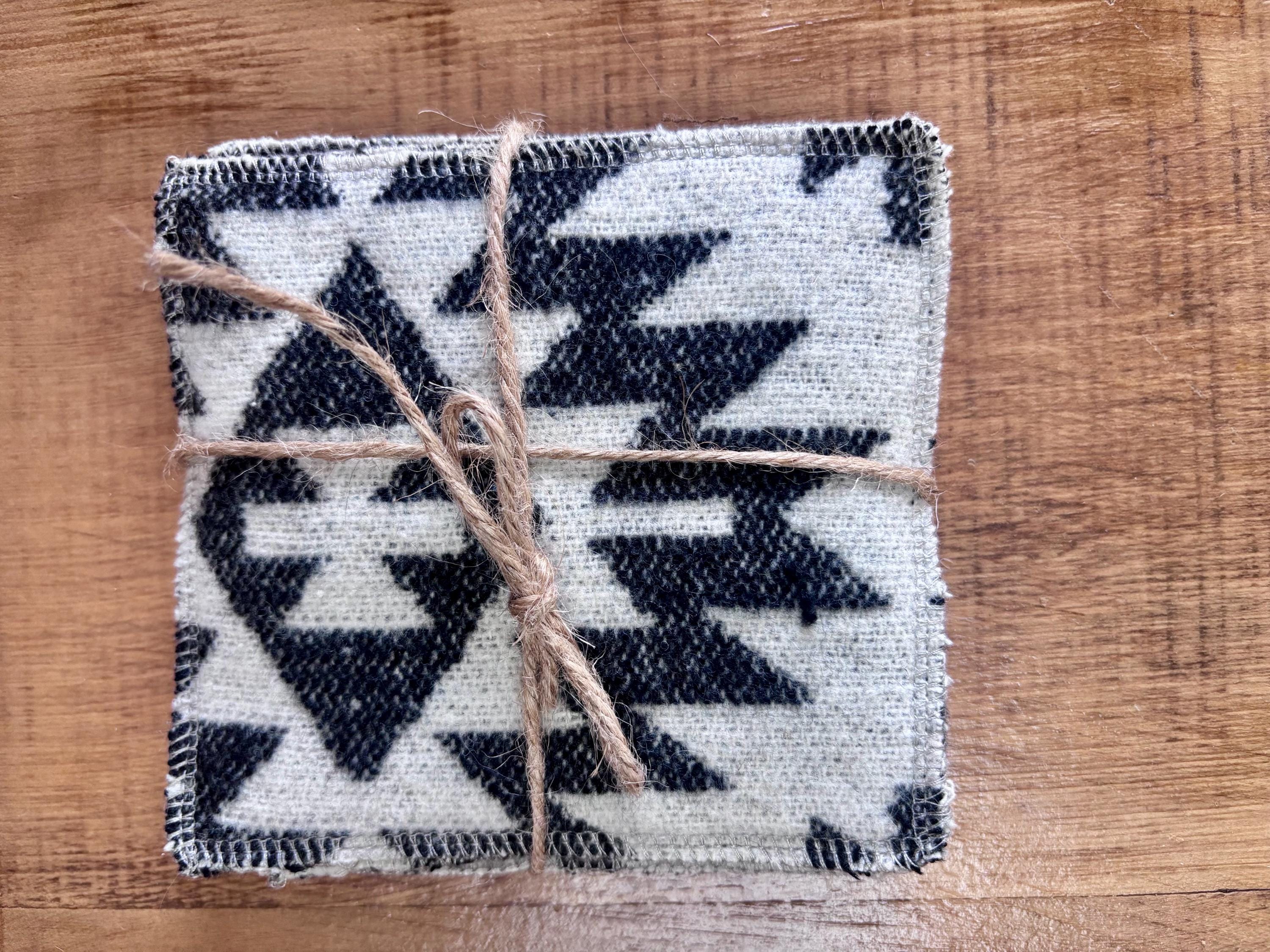 These are sustainably made using offcuts of fabric so please note that colours and patterns vary for each coaster and all sets are unique. Fabric is of various colors, geometric shapes, stripes and woven designs.