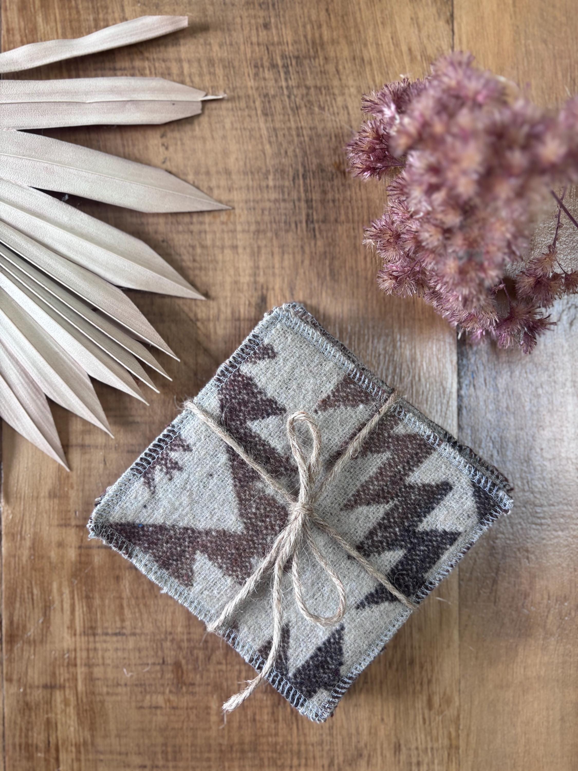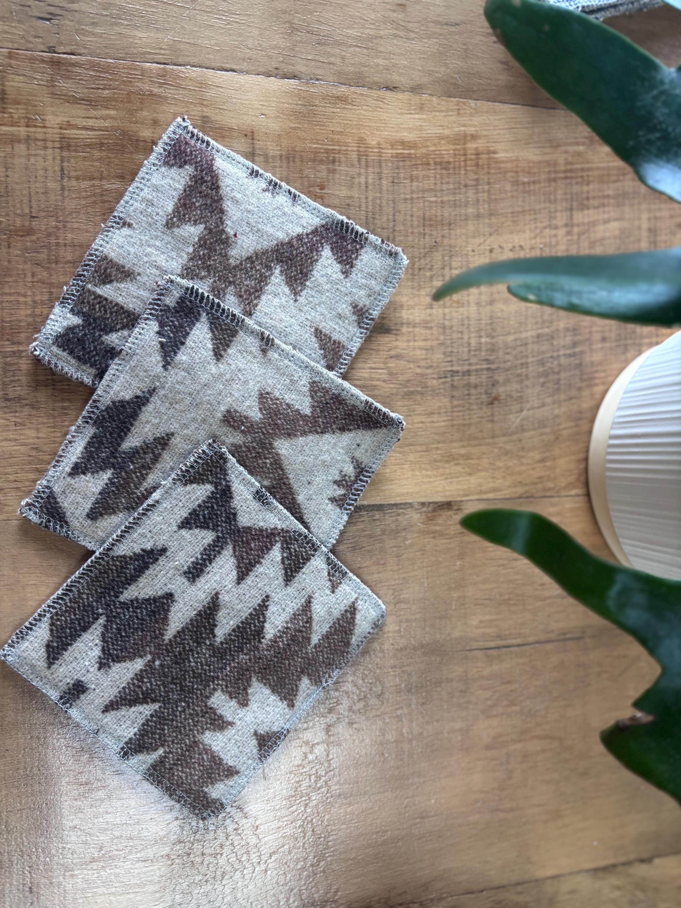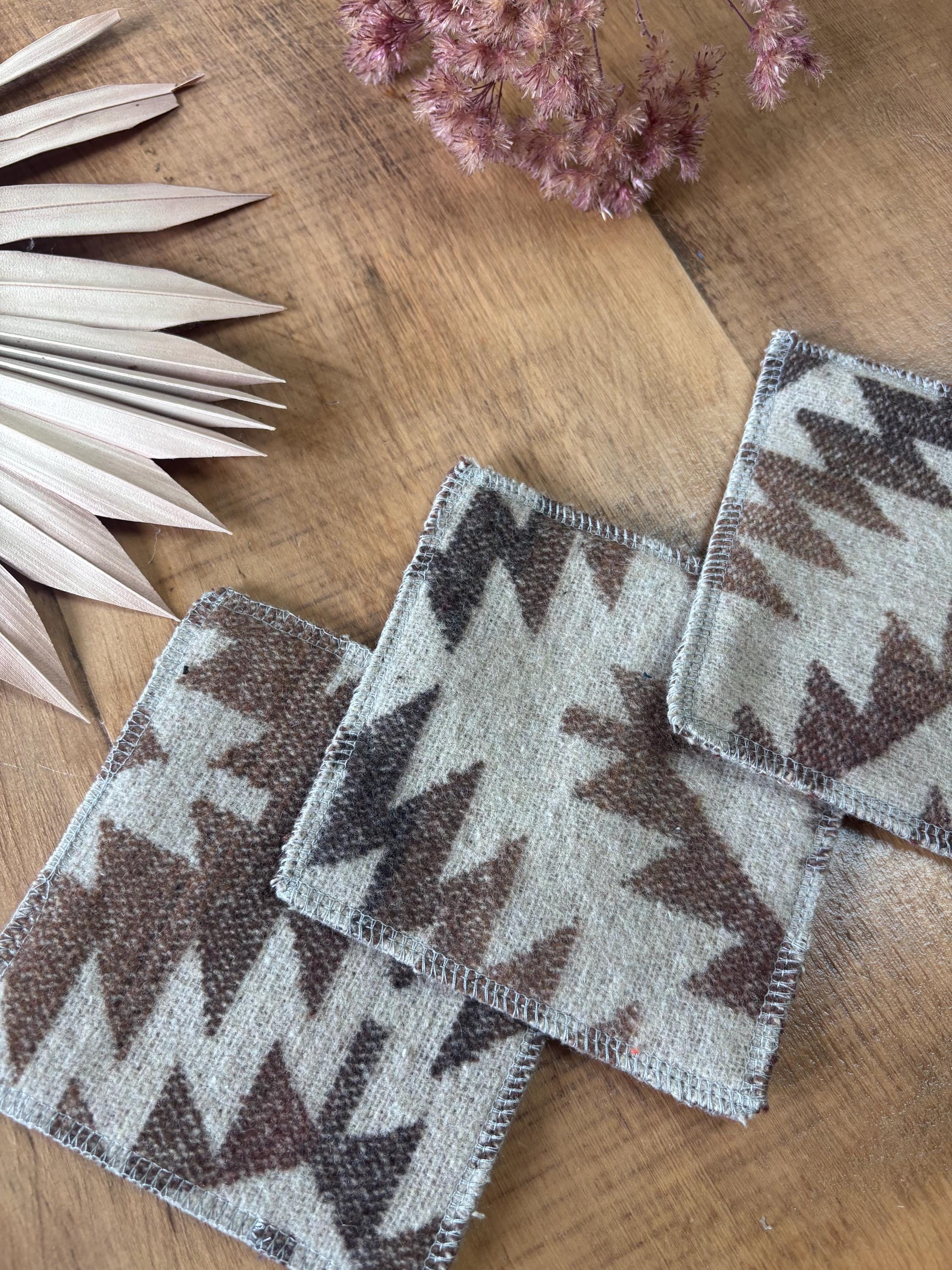 These are sustainably made using offcuts of fabric so please note that colours and patterns vary for each coaster and all sets are unique. Fabric is of various colors, geometric shapes, stripes and woven designs.