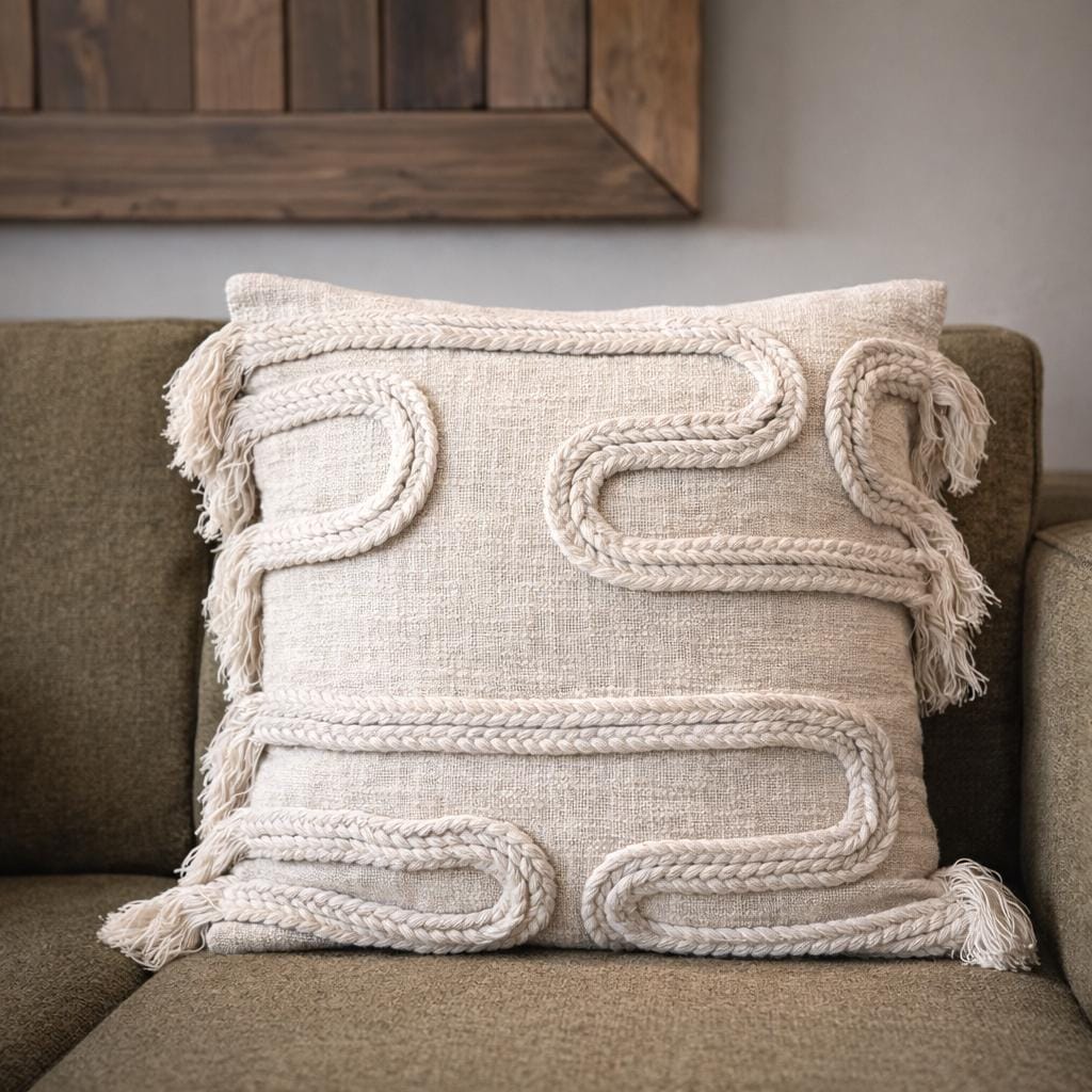 The Seabraid Pillow Cover is a handmade woven pillow with braided detail, adding texture and a quiet nod to coastal craft. Perfect for adding a little coziness and character to your space.