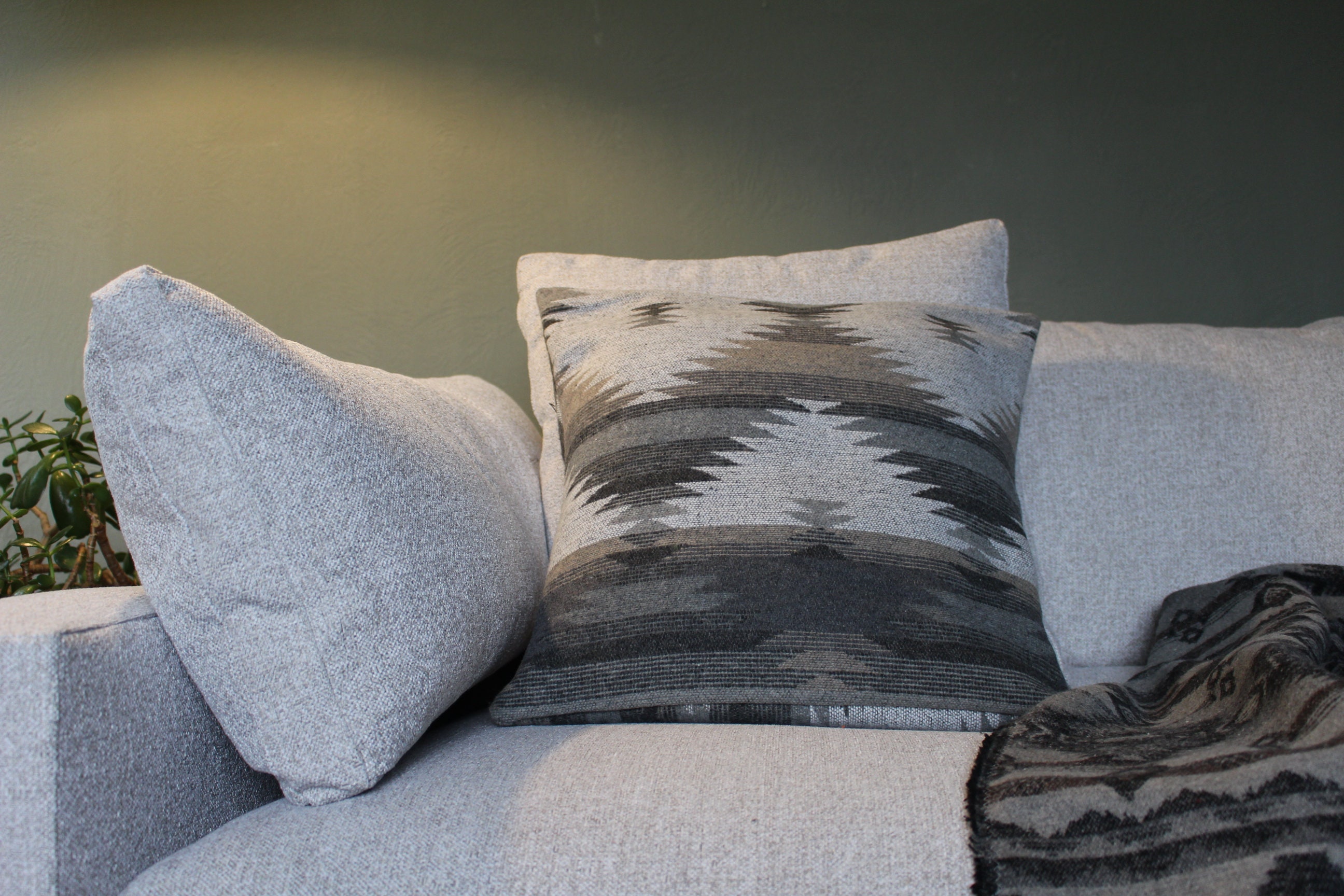 Designed to add personality to any space, this handmade pillow cover is bound to make a statement. Each piece is created using upcycled textiles, which makes all of our pieces unique. Please note that all colours and pattern placement will vary due to this process.